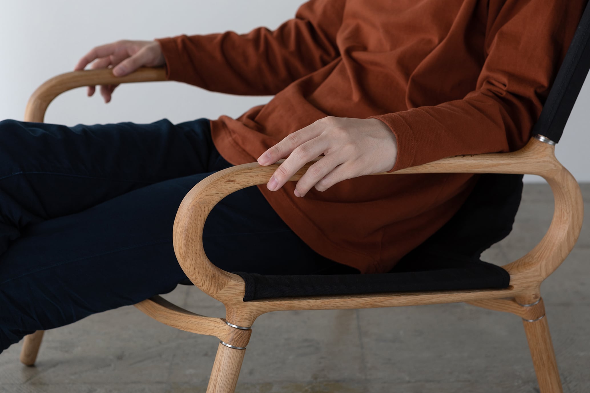 また、横から見て楕円形が印象的な肘掛けは、